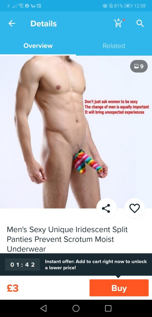 If you read the first part, then you know how this works. Wish advertises things on my Facebook, that it thinks I might like to wait 3 years to be delivered. I click these things as I’m a nosey prick
