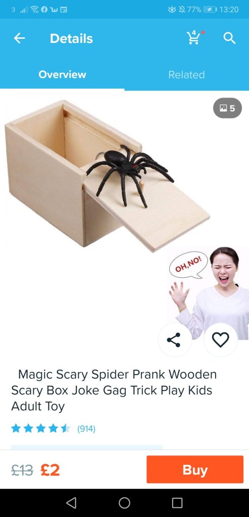 “Oh No!” “It’s a poxy plastic spider!”. People that buy this are most likely the shit Uncle at a family party. You know the one:
