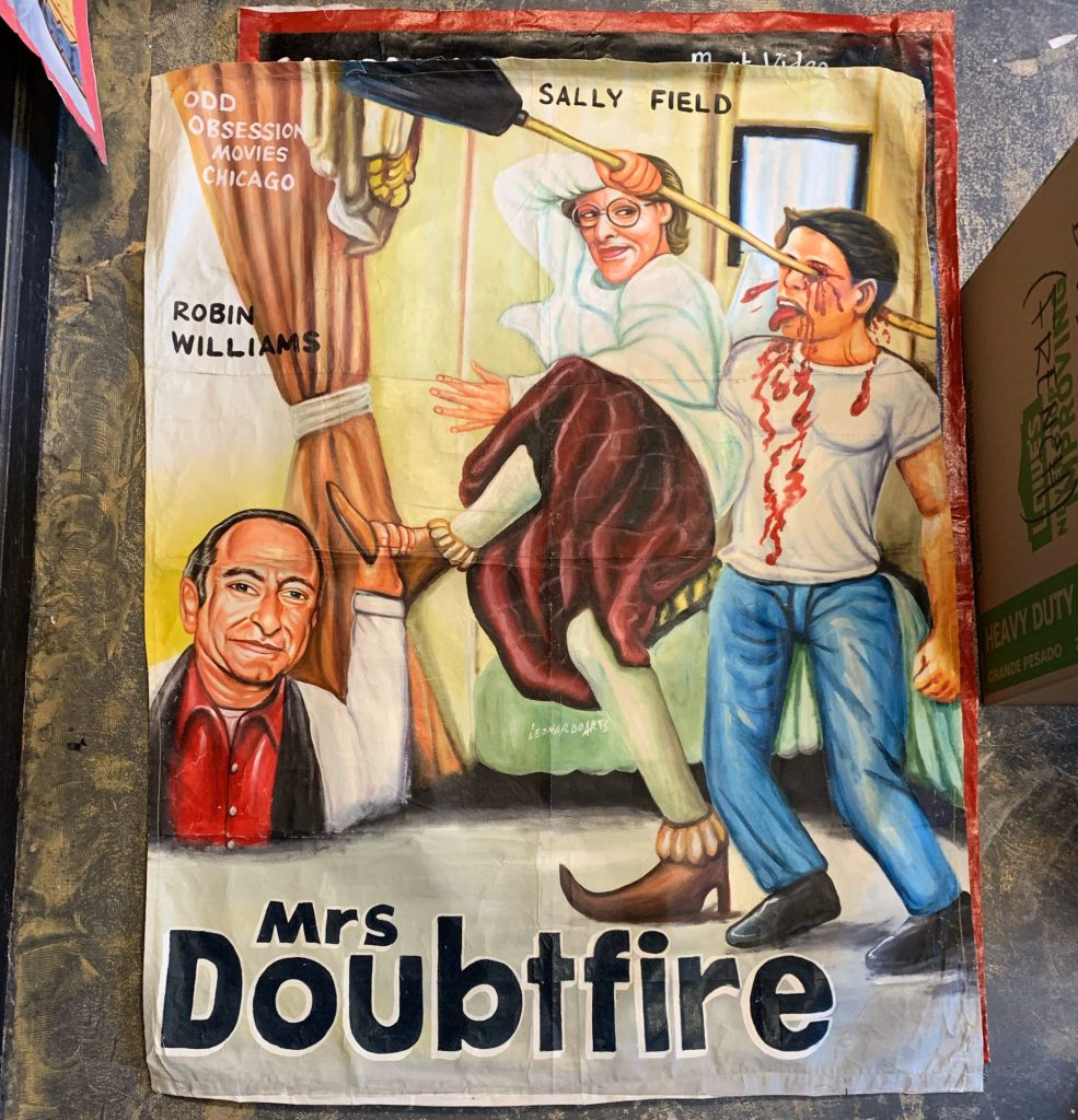 Cinemas in Ghana commissioned local artists to hand-paint them on used flour sacks. Some if these were surprisingly good. Some look finger painted by a seal. Yet all are at least intriguing.
