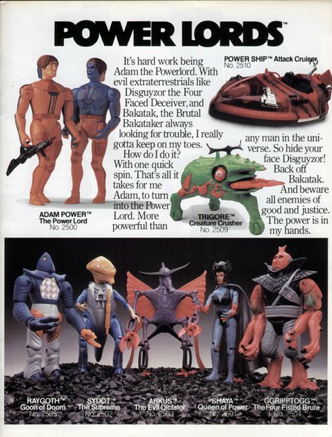 Now HERE is a forgotten gem. Released by Revell in 1983, Power Lords are all but forgotten. The story for the toy line follows the life of Adam Power, a human who is given a special “Power Jewel” that allows him to protect the galaxy from bad guys like the evil Arkus. While Adam battles Arkus from his fortress, called Volcan Rock, Arkus is equally bent on stealing the Power Jewel from Adam and taking over Volcan Rock on is quest to conquer the galaxy.